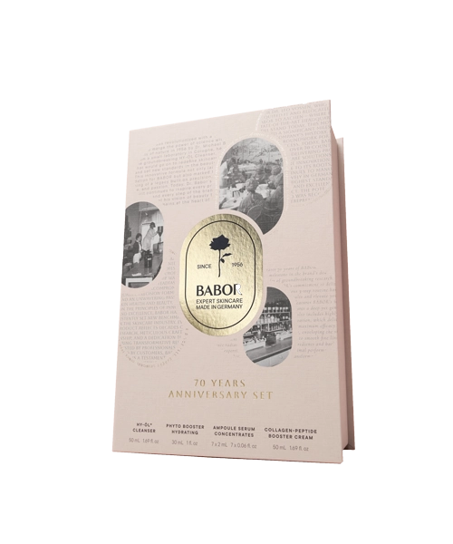Feiere 70 Jahre BABOR mit einer exklusiven Pflegeroutine: Reinigungsikone, Ampullenkraft und Bestseller-Creme für einen sichtbar glatten, strahlenden Teint.